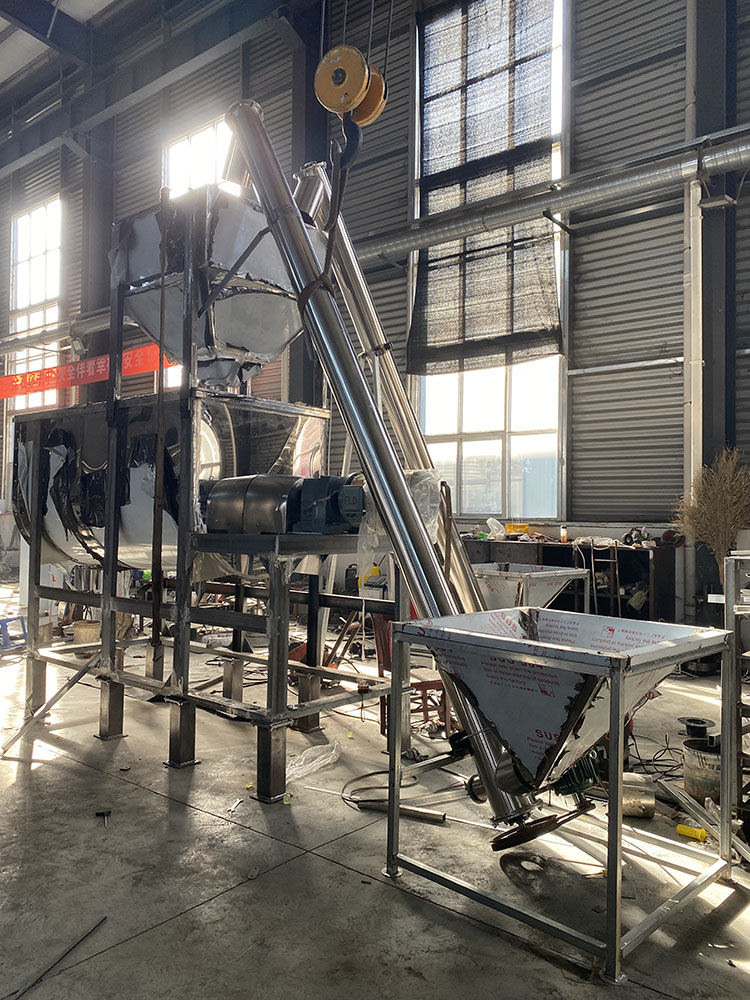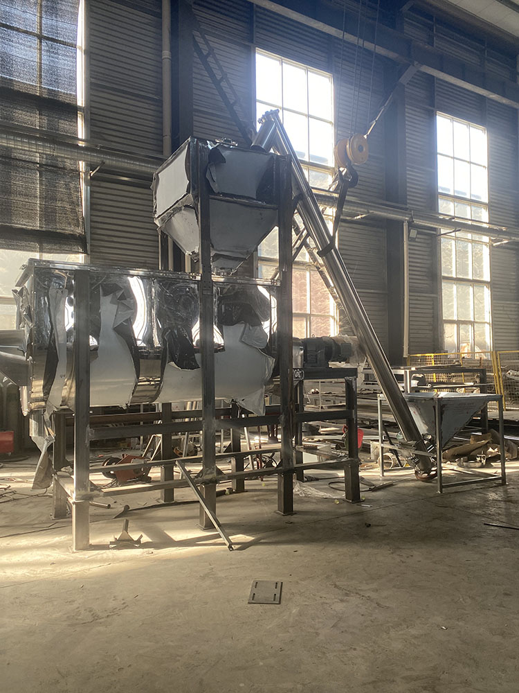 Ключевой технологической особенностью этого оборудования является двухспиральная конструкция внутреннего смесительного вала. В отличие от традиционных односпиральных конструкций, две спиральные ленты симметрично расположены, а их спиральные направления дополняют друг друга, создавая трехмерный режим смешивания «внутренней и внешней циркуляции, нисходящего вращения» во время работы. Внутренняя спираль проталкивает сырье к центру, а внешняя спираль распределяет его по краям. В сочетании с большой смесительной камерой грузоподъемностью 2 тонны это позволяет достичь равномерного смешивания различных сухих порошкообразных материалов с однородностью смешивания более 99,5%. Это полностью решает проблемы «застойных зон и неравномерного смешивания» в традиционном смешивании, обеспечивая стабильное качество каждой партии готовой продукции.